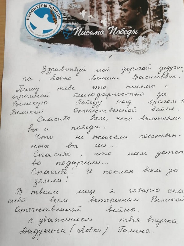 Поэтому мы не остались в стороне и приняли участие в написании письма людям, которые лично принимали участие в Великой Отечественной войне.