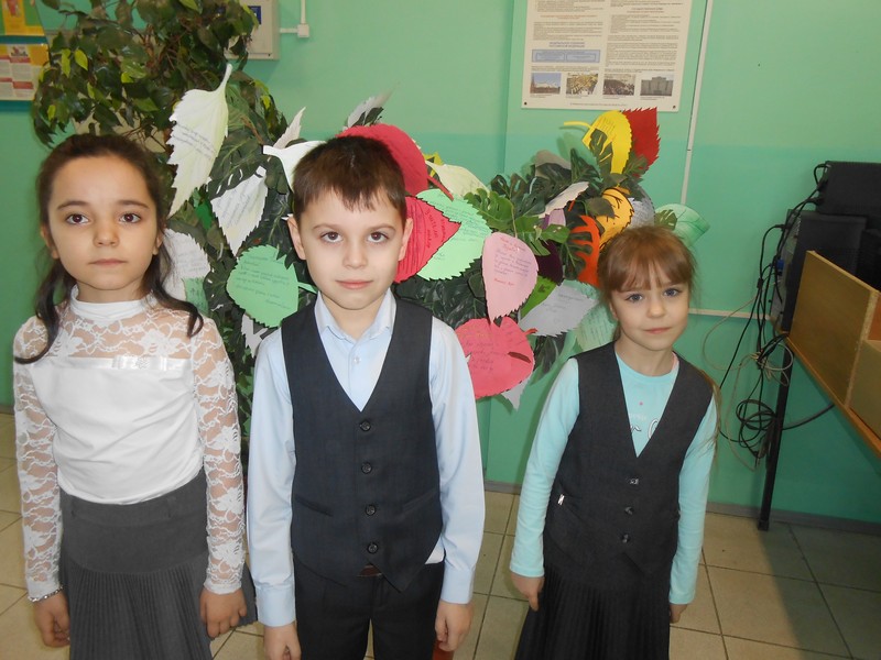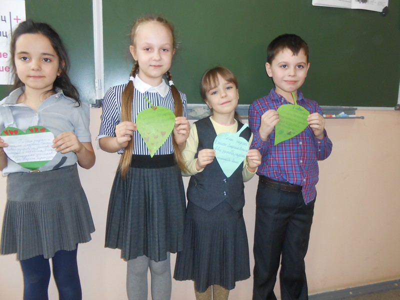 Наш класс участвовал в акции « Листик доброты». На них ребята писали пожелания своим учителям, мамам, одноклассникам. Из листьев в школе собрали дерево.