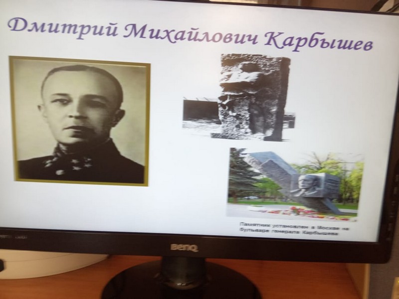Ребята начальной школы познакомились с презентацией, где увидели ужасы концлагерей для детей и взрослых. Познакомились с биографией генерала Карбышева, которого замучили в лагере смерти.