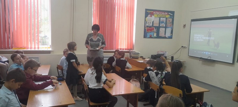 В конце занятия школьники выполнили ряд заданий по правилам ответственного хозяина и получили задание сфотографироваться со своим пушистым другом или нарисовать и поделиться своим творчеством в социальных сетях.