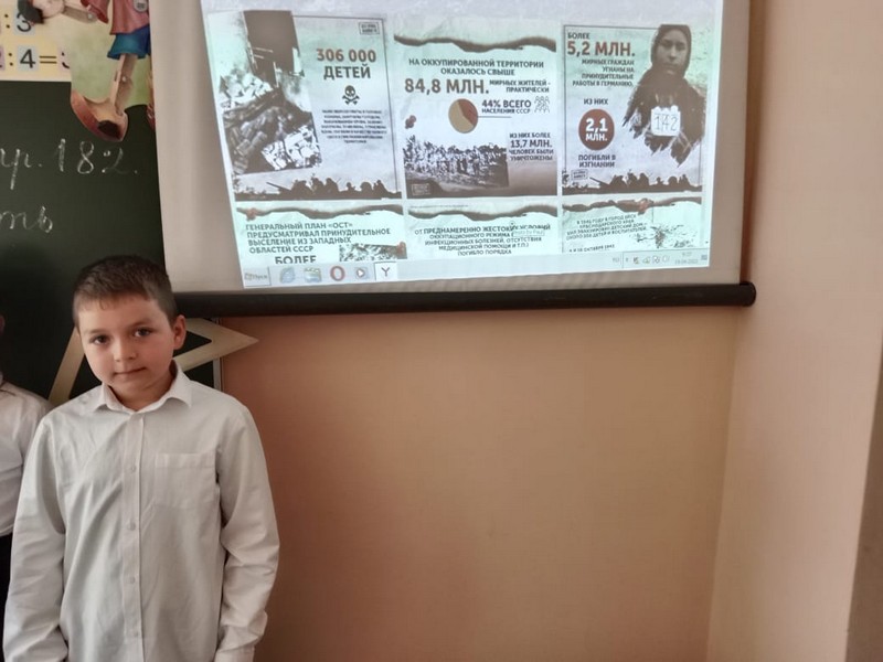 19 апреля 2022 года во 2 классе МБОУ Лысогорская СОШ был проведен классный час на тему:«Реконструкция исторических фактов в память о геноциде советского народа нацистами и их пособниками в годы Великой Отечественной войны».