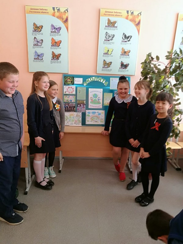Дети прослушали гимн «Эколят», дали клятву беречь и охранять природу. Посмотрели видеофильм об Эколятах. Также привели в порядок клумбы на территории школы.
