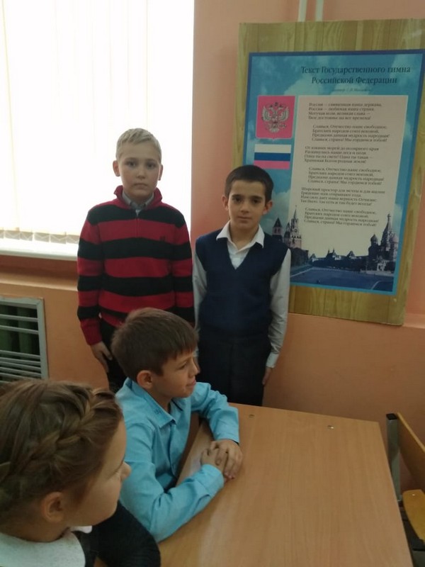 10 декабря 2021 г в 4 классе был проведен классный час ««Конституция – основной закон государства»» Школьники познакомились с символами государства. Важным результатом игры явилось понимание того, что надо расти достойными гражданами своих предков, которые совершили немало трудовых, военных и иных подвигов во славу Отечества.