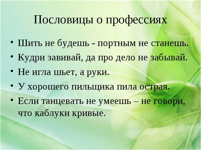 Обучающиеся внимательно слушали стихи-загадки, они помогали выявить знатоков профессий. По возможности, следовало показать иллюстрации людей этих профессий. Велась работа с пословицами, объясняя смысл каждой пословицы. Провели конкурс «Назови профессию».По выбранной букве,
