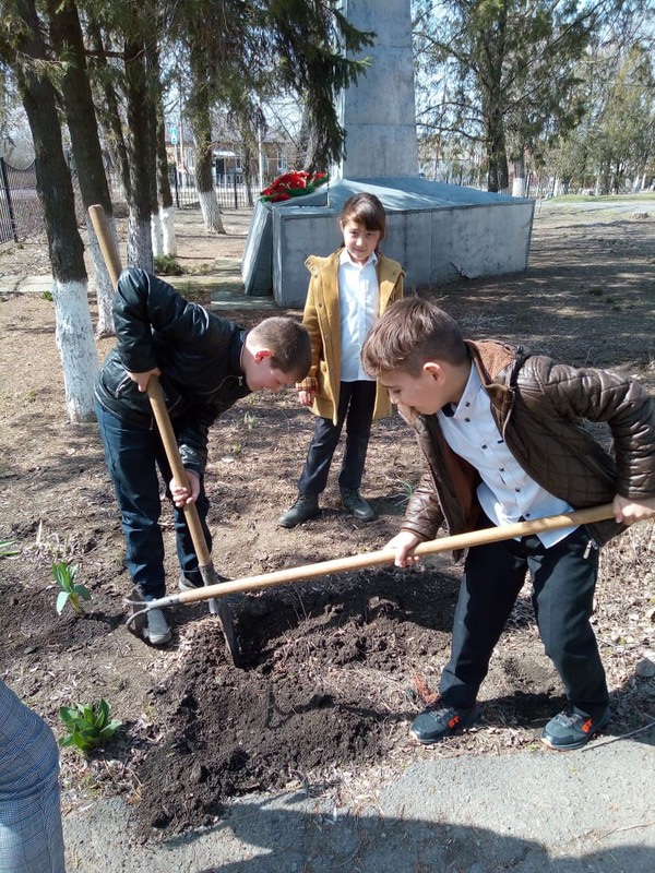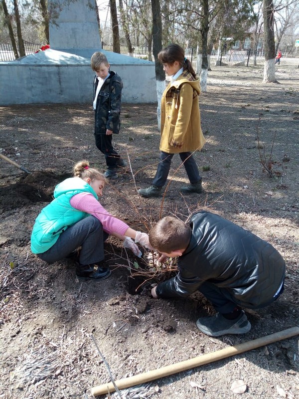 6 апреля учащиеся 4 класса приняли активное участие в акции древонасаждения. Ребята принесли из дому саженцы кустарников, луковицы цветов и все это посадили на территории школьного двора. Настроение во всех было отличное, потому что они сделали полезное дело.