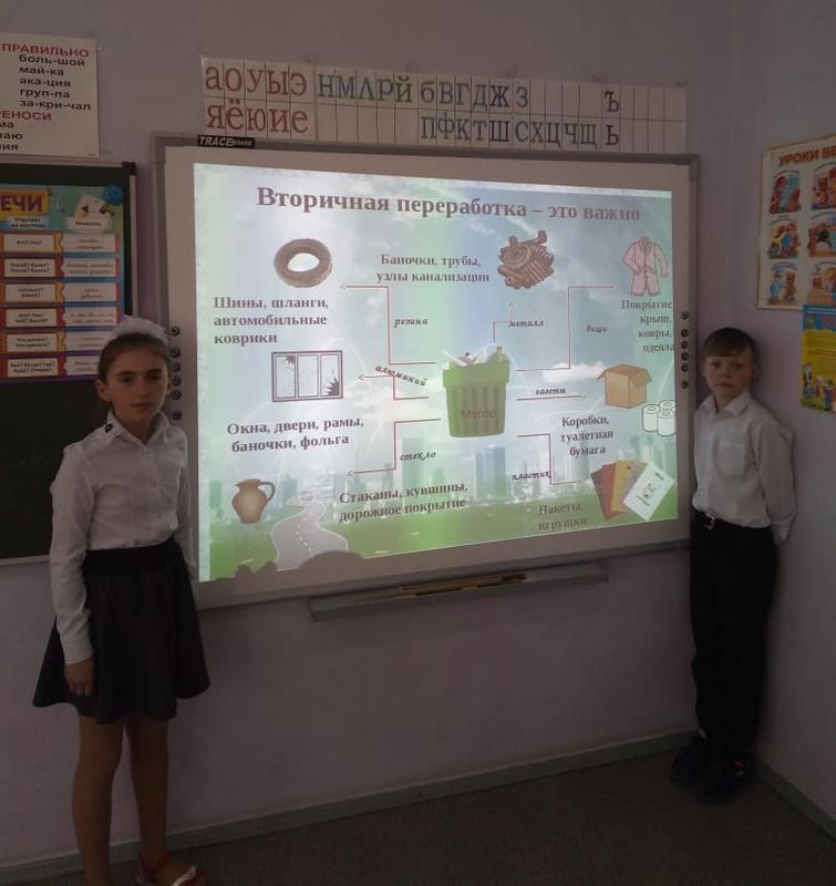 В 4 классе был проведен классный час «Мусор - это не отходы, а вторичное сырье.»