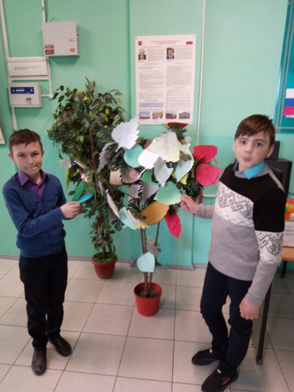 Учащиеся 4 класса приняли участие в акции « Почта радости». Ребята написали записки на березовых листиках с пожеланиями для своих одноклассников и педагогов.