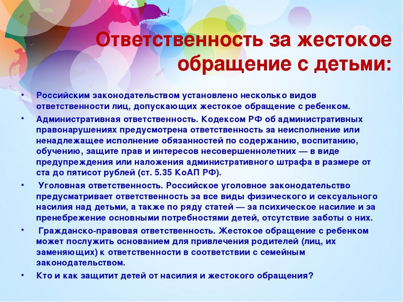 Среди множества проблем, находящихся на стыке педагогических, психологических, юридических, социальных и медицинских дисциплин проблема жестокого обращения с ребенком и подростком в семье является одной из наиболее актуальных.