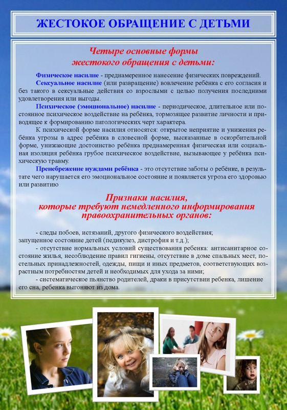 В последнее время возросло насилие в семье, которое, очень часто, проявляется как жестокое обращение с детьми и подростками. По данным из ежегодного государственного доклада «О положении детей в Российской Федерации» в каждой четвертой российской семье имеют место факты насилия.
