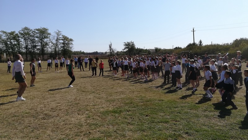 Учащиеся 11 класса провели флешмоб на школьном стадионе.