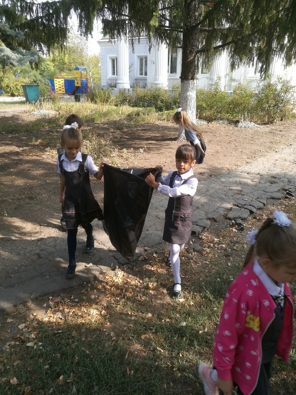 А затем закрепили знания на практике, убрали детскую площадку. Ученики 2 класса собрали и разделили мусор разных видов.