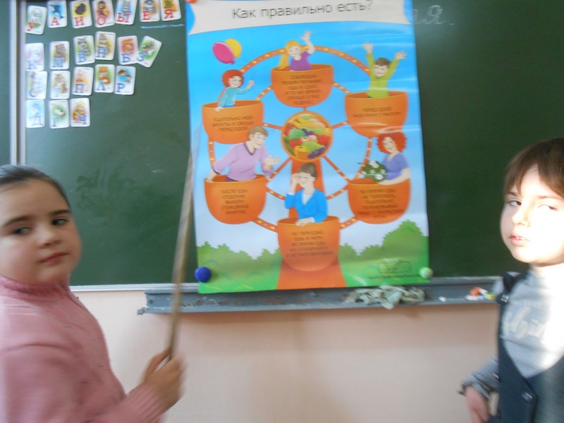 Ребята познакомились с пирамидой питания, с правилами правильного питания. В конце занятия поиграли в игру «Полезно-неполезно», разгадали кроссворд, были предложены пословицы про питание. На уроке русского языка ребята 2 класса написали сочинение «Что можно есть на завтрак».