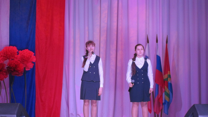Две ученицы нашей школы Баландина Екатерина и Шорохова Мария выступили в номинации дуэты от11 до 14 лет. Девочкам Екатерине и Марии за исполнение песни Елены Сырмич «Нам нужен мир» было присуждено 1-ое место. Им вручили награду, Почетную грамоту и ценный подарок.