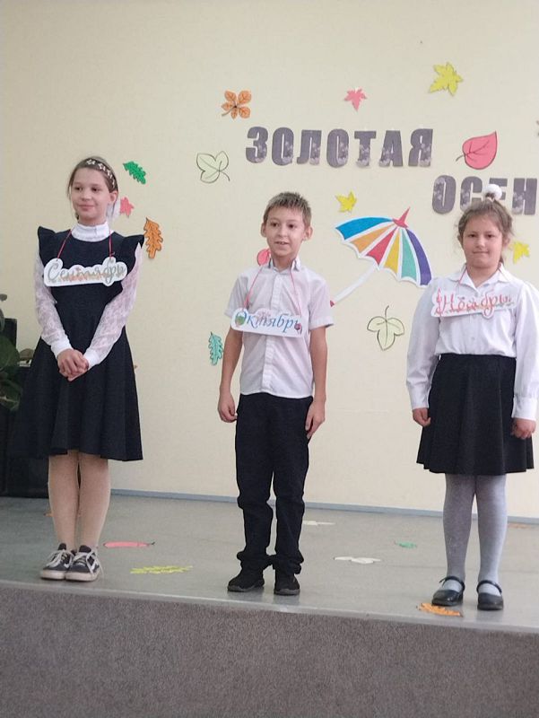 Золотая осень - одно из самых ярких и красочных времён года. Традиционно, в нашей школе проходят праздники, посвященные осени. Так и в этом году 18 октября в начальной школе прошел осенний праздник "Осень, осень, в гости просим!". В течение недели дети активно готовились к празднику: рисовали рисунки на осеннюю тему, изготовляли поделки из природного материала. Была оформлена выставка творческих работ: стенд с рисунками «Осень золотая в гости к нам пришла» и поделками из природного материала. В гости к детям пришли осенние месяцы: Сентябрь, Октябрь и Ноябрь и конечно же сама ОСЕНЬ.