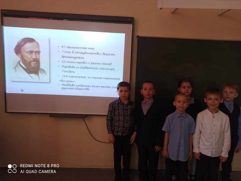 В ходе урока обучающихся познакомили с биографией драматурга, миром А.Н. Островского на сцене и. на экране; обсудили актуальность произведений драматурга в наши дни.