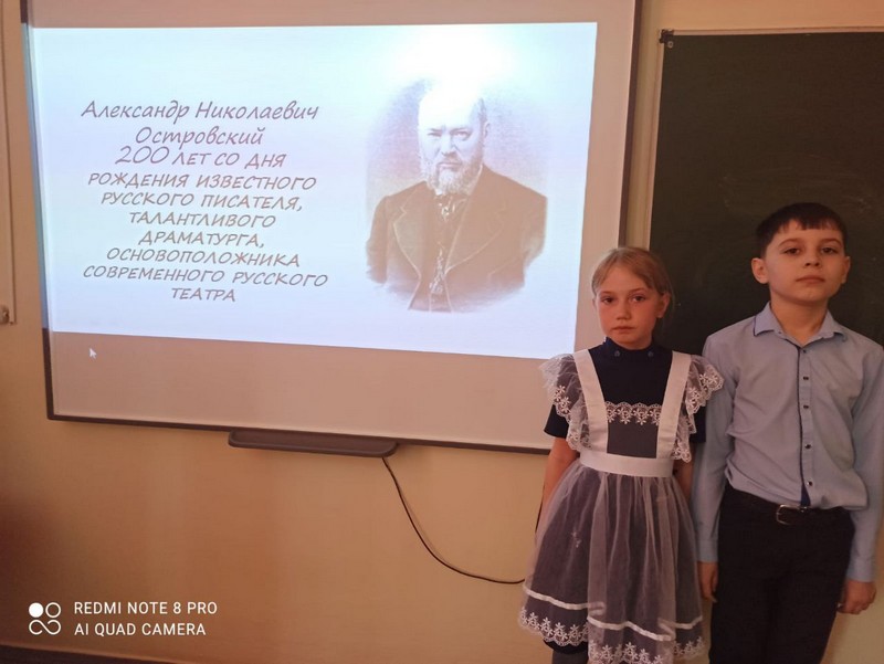 17 апреля, В МБОУ Лысогорской СОШ, в 1-4 классах, прошел Всероссийский урок, посвященный 200-летию со дня рождения А.Н. Островского.