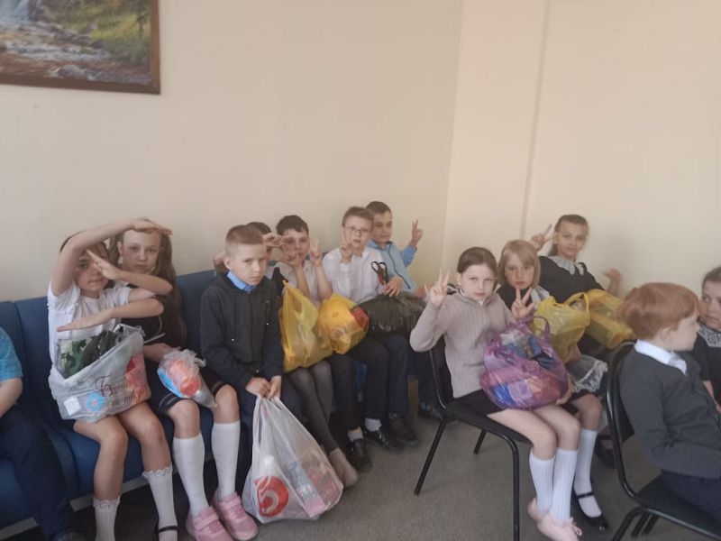 Детьми вместе с родителями были собраны продукты длительного хранения (консервы, медикаменты, печенье, чай и т.п.), средства личной гигиены, личные вещи.