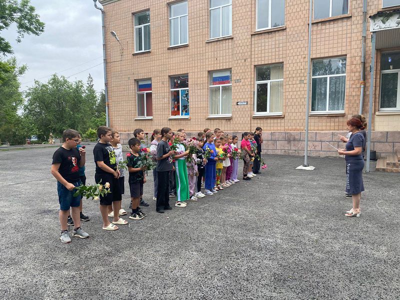 Затем состоялась особая линейка, посвящённая Дню памяти и скорби. Ребята почтили память погибших воинов минутой молчания и возложили цветы к памятнику Это важное событие помогло детям осознать значимость героического прошлого нашей страны. Продолжился день традиционными мероприятиями: были проведены замеры роста и веса, благодаря которым мы смогли оценить здоровье наших маленьких гостей
