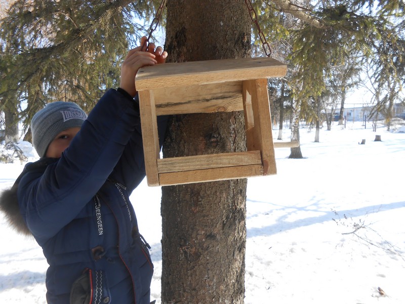 На совместном занятии кружка «Эколята» ребята узнали, что зима для пернатых – самая тяжелая пора. Чтобы помочь зимующим птицам, необходимо постоянно подкармливать их в течение зимы. На сооружение кормушки из подручных материалов уйдёт немного времени. Главное - в дальнейшем кормить птиц постоянно. Нерегулярное наполнение кормушки может вызвать гибель привыкших к подкормке пернатых. Во второй половине зимы, когда большая часть зимних ягод и плодов съедена или пропала, дополнительные подкормки особенно важны.. На уроках технологии велась беседа о правилах изготовления кормушек. Обзор литературы и практика показали, что кормушки могут быть разных конструкций и в их изготовлении можно использовать разнообразный материал, но главное условие - защита корма в них от ветра, снега, дождя.