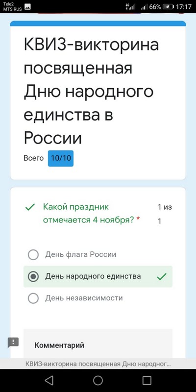 КВИЗ-викторина «День народного единства». Участники ответили на 10 интеллектуальных вопросов, связанных с историей возникновения и значением государственного праздника «День народного единства». По итогам прохождения викторины участники не только узнали, насколько они эрудированны в теме, но и расширили кругозор в данной области.