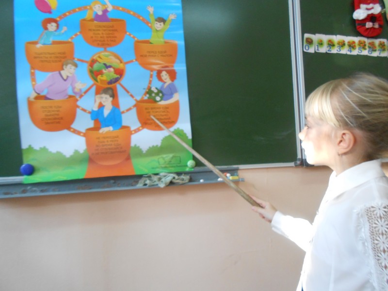 Ребята познакомились с пирамидой питания, с правилами правильного питания. В конце занятия поиграли в игру «Полезно-неполезно», разгадали кроссворд, были предложены пословицы про питание. На уроке русского языка ребята 2 класса написали сочинение «Что можно есть на завтрак».