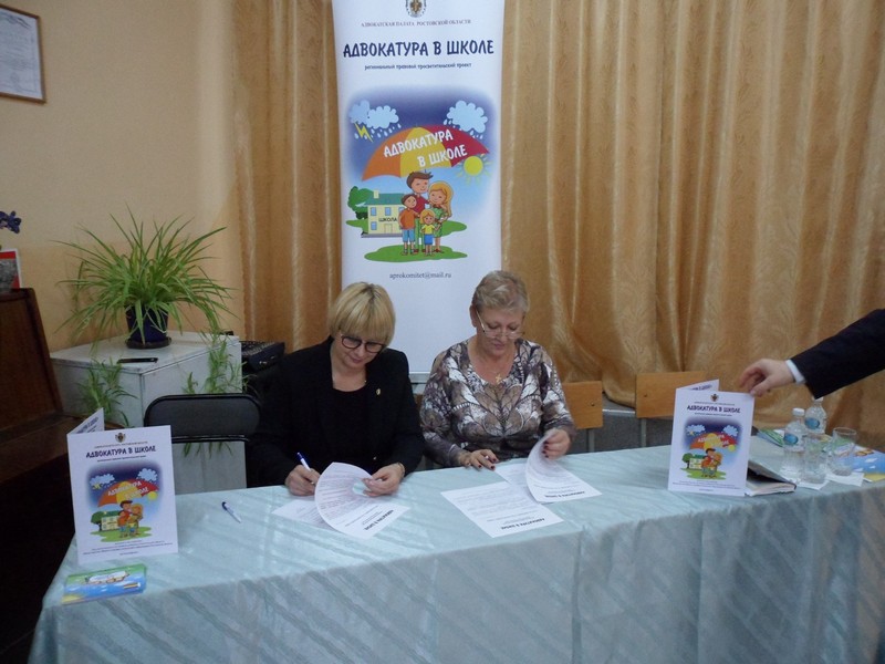 2 ноября 2017 года в актовом зале Лысогорской СОШ в рамках регионального правового просветительского проекта "АДВОКАТУРА В ШКОЛЕ" в торжественной обстановке было подписано «Соглашение о взаимодействии» между адвокатом Адвокатской палаты Ростовской области Титовой В.Ю. и Директором МБОУ Лысогорской СОШ Карповой И.Н. в целях взаимодействия Адвокатов и Школы в вопросах: