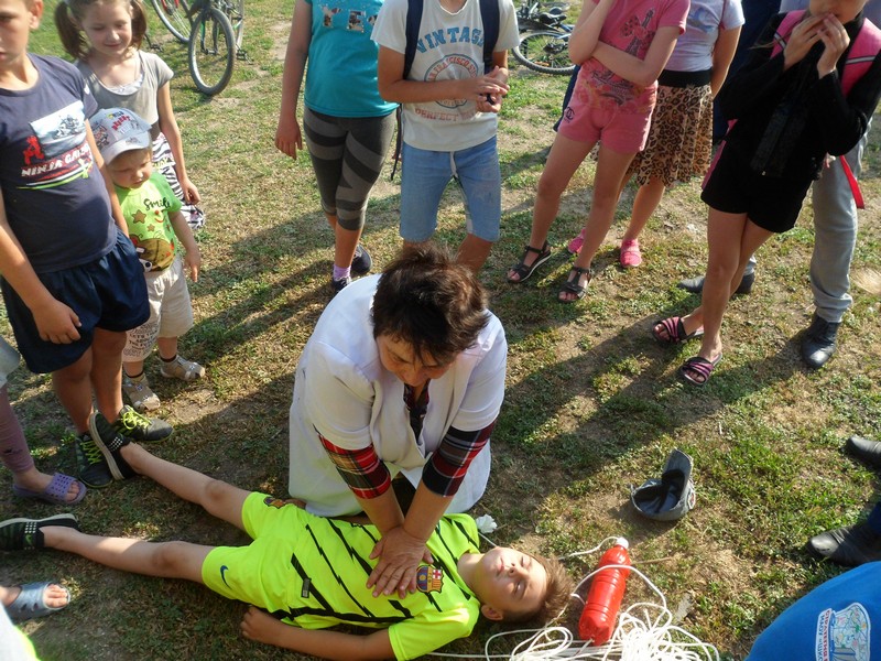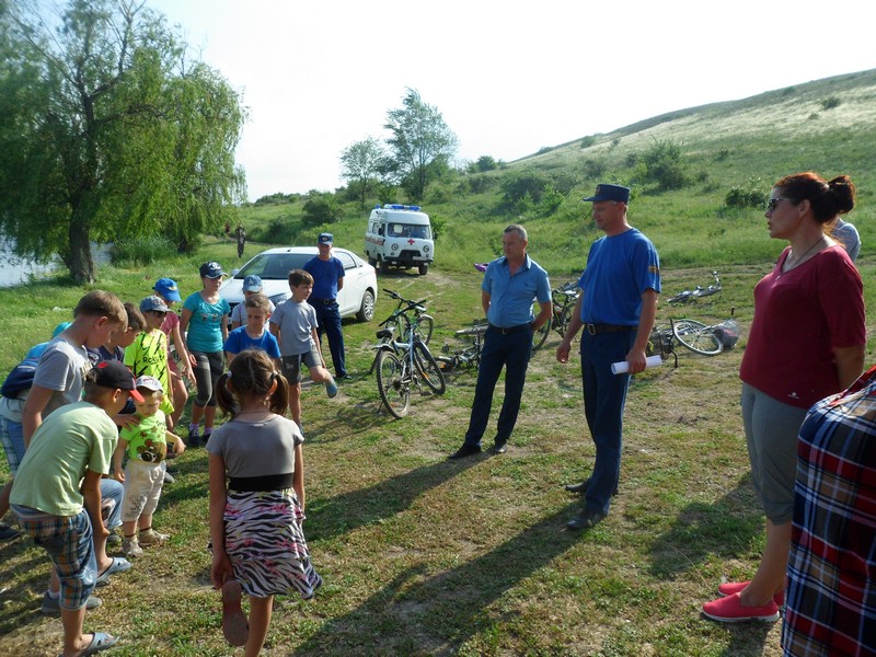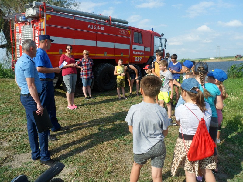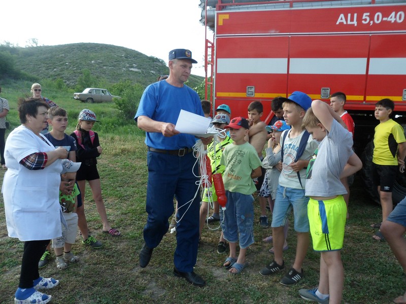 Как правильно себя вести на воде, что делать в экстремальной ситуации и об оказании помощи пострадавшему на воде с наглядными примерами ребятам рассказали начальник пожарной части №227 Шевцов Ю.В. и фельдшер бригады скорой помощи Гончаренко Т.Н.