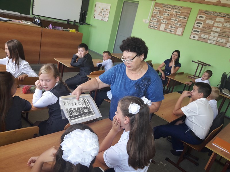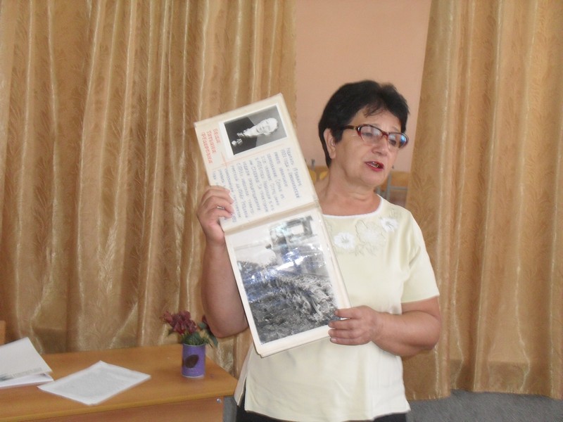 На этом уроке перед ребятами выступила библиотекарь Дома Культуры Ладыченко Р.В. Она рассказала об истории родного села, познакомила с известным человеком Куйбышевского района Д. В. Веденеевым, который долгое время возглавлял колхоз в Лысогорке, сделал его процветающим, улучшил жизнь людей и оставил большое наследие, которое существует доныне. Под его руководством были построены больница, Дом Культуры, водопровод, Дом быта, кафе, дороги.