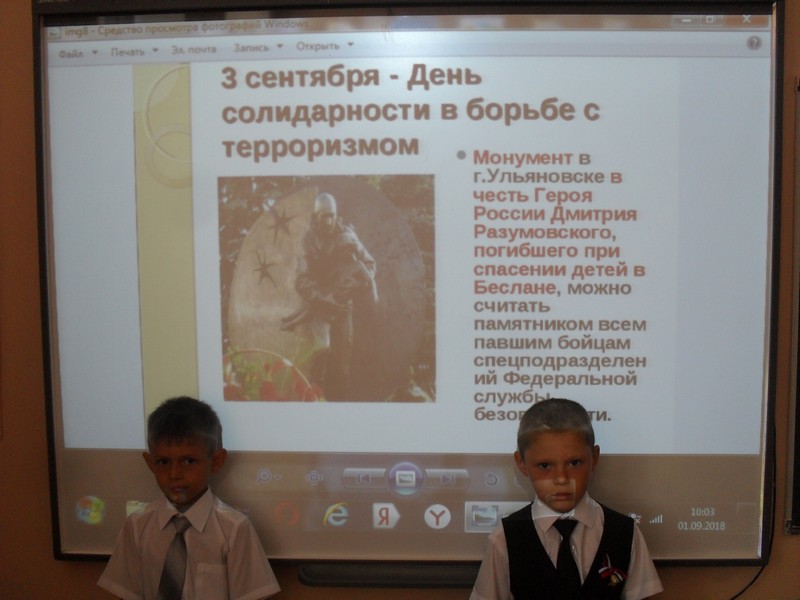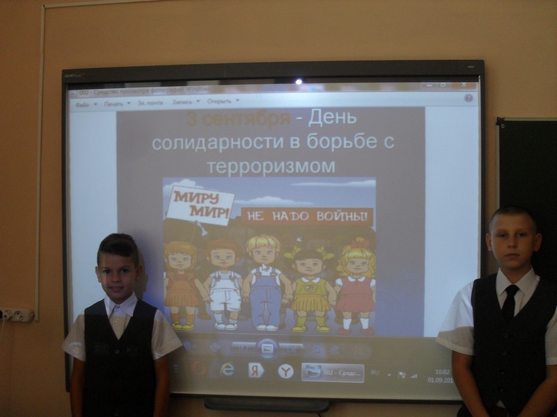 3 сентября в нашей школе были проведены мероприятия, посвященные проблеме борьбы с терроризмом. День солидарности в борьбе с терроризмом - памятная дата, установленная в России еще в 2005 году, она связана с трагическими событиями в Беслане, где в сентябре 2004 года террористы захватили городскую школу.