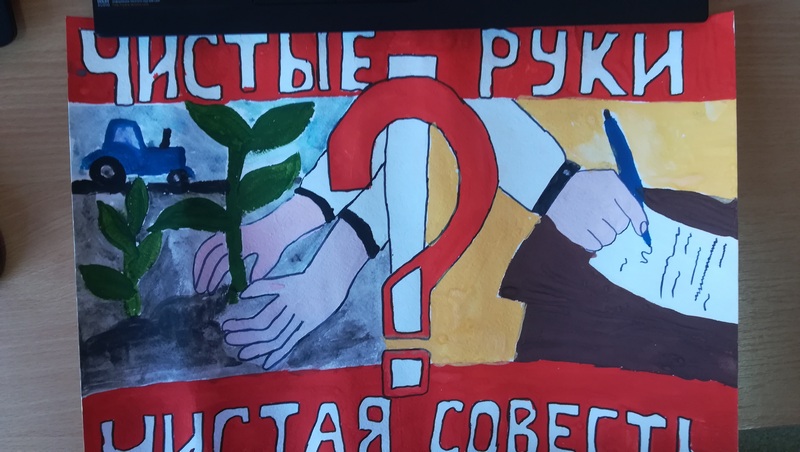 Цель конкурса – привлечение творческого потенциала молодежи к деятельности, направленной на снижение правового нигилизма среди населения, формирование антикоррупционного общественного мнения и нетерпимости к коррупционному поведению. В школьном этапе конкурса приняли участие Донцова Эльвира - работа «С чистыми руками по жизни»и Перетяжко Лилия - работа «Чистые руки – чистая совесть», номинация «Лучший плакат» .