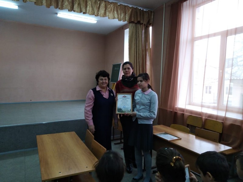 Заместитель главы Администрации Куйбышевского района Г. А. Смаглюкова и глава Администрации Лысогорского сельского поселения Н. В. Бошкова вручили благодарственные письма Завати Наталье, Бондарцовой Дарине, Николаевой Варваре, Гончаренко Карине, Жижченко Еве.
