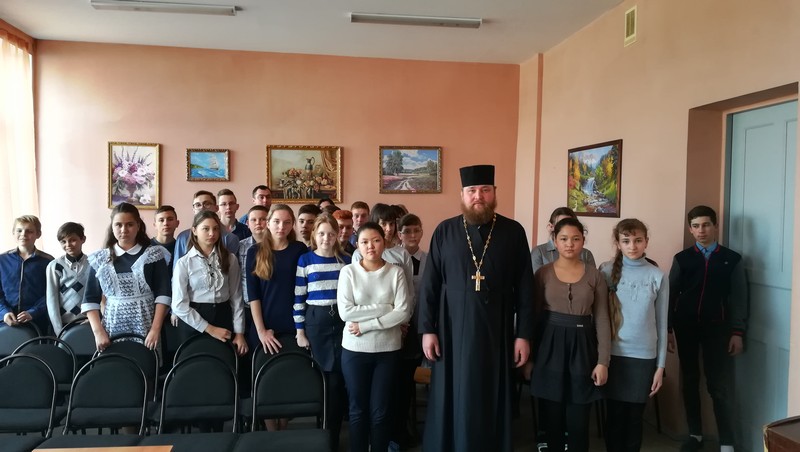 В школе прошла встреча учащихся 7 -8 классов с Настоятелем храма Рождества Пресвятой Богородицы протоиереем Борцов П.В.