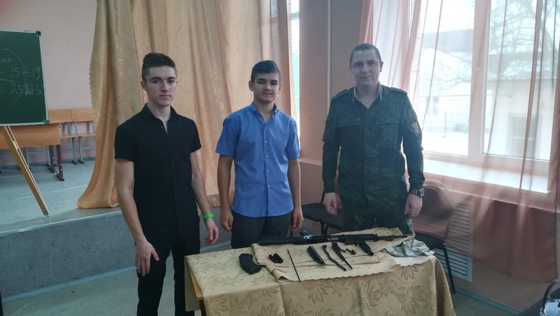 Прапорщик пограничной службы Солодунов Н.Н. 30 января провел урок по сборке-разборке АК и стрельбе из пневматической винтовки с участниками ЮДП «Беркут». Рассказал юнармейцам правила разборки-сборки, строение автомата. Затем в спортивном зале школы прошла подготовка к соревнованиям по стрельбе с учителем ОБЖ Кушнаревым И.В. и прапорщиком Солодуновым Н.Н.