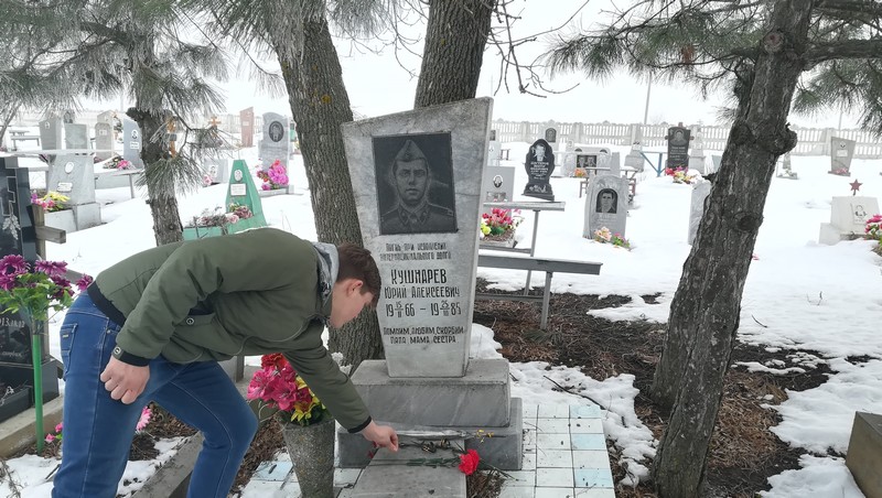 После завершения мероприятия участники ПК «Память», - руководитель Горьковенко М.В., представители общества ветеранов «Саланг» возложили цветы к могилам Кушнарева Юрия и Кузнецова Александра.