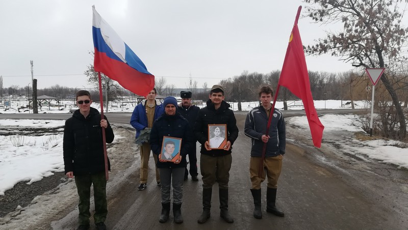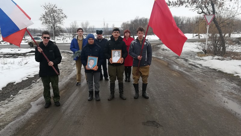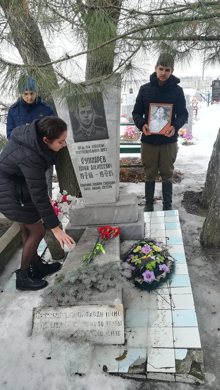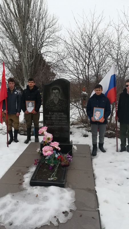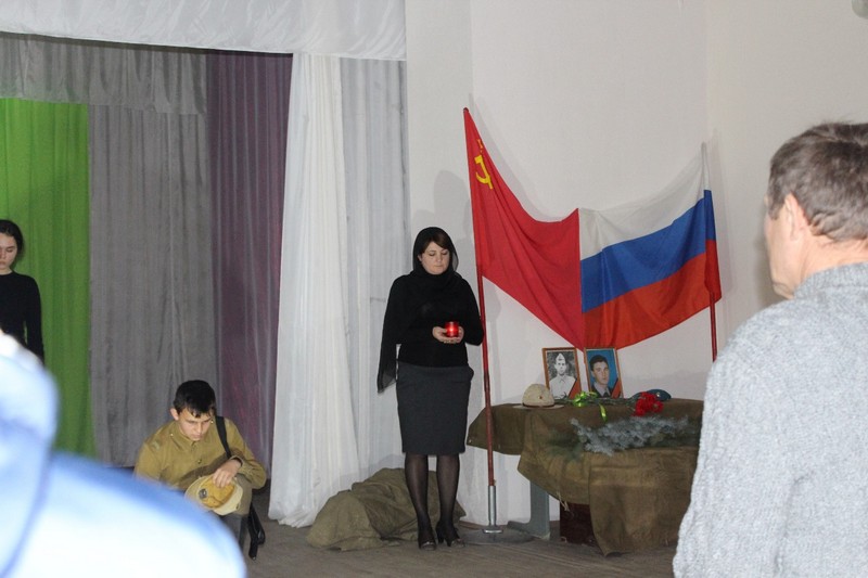 Вспоминали погибших земляков Кушнарева Юрия, исполнявшего интернациональный долг в республике Афганистан и погибшего Кузнецова Александра, принимавшего участие в боевых действиях в Чеченской Республике. На сцене оформлена композиция руководителем клуба «Реставратор» Солодиловым С.Н. погибшим солдатам.