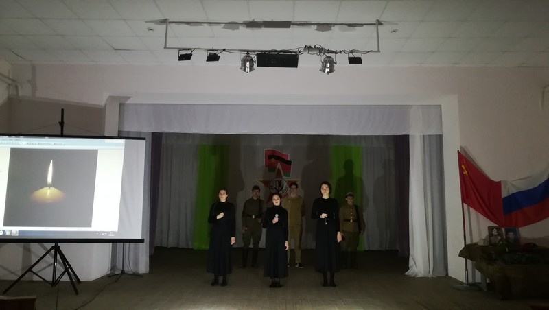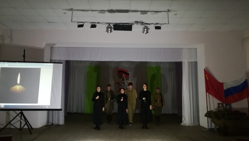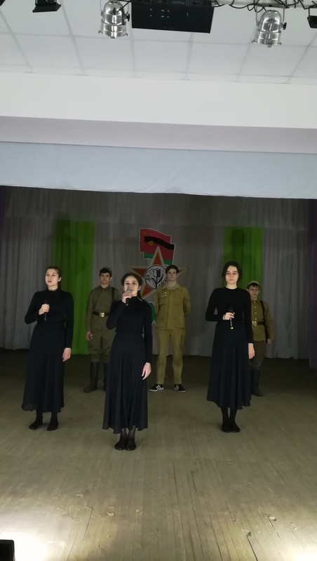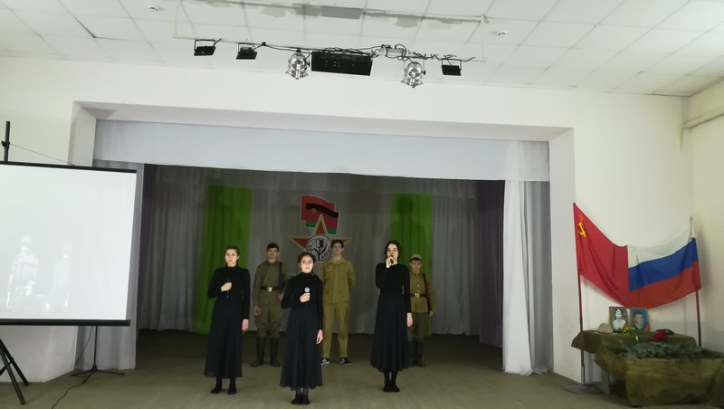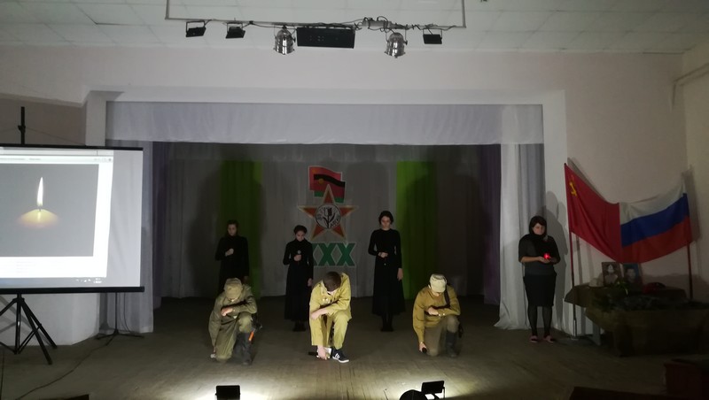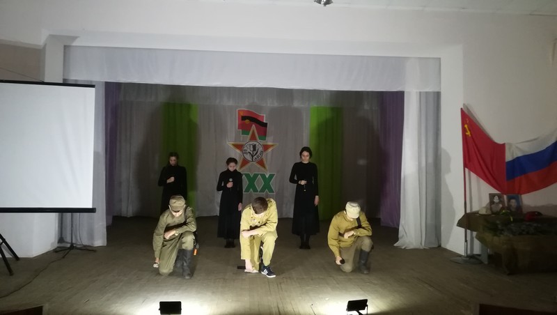 «Время выбрало нас, закружило в афганской метели..». С этих слов началась театрализованная постановка. Иванцов Максим, Пильгаев Владислав, Трофименко Эдуард, Рыбак Анжелика, Завати Наталья, Бошкова Полина, Вахрамеев Андрей, Гродский Владимир участники ПК «Память» тронули сердца зрителей монологами, игрой в театрализации, фотографиями в презентациях.